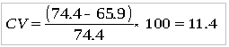 Возвращаясь к нашему примеру, можно рассчитать, что вариация второго результата определения общего белка относительно первого определения равна: