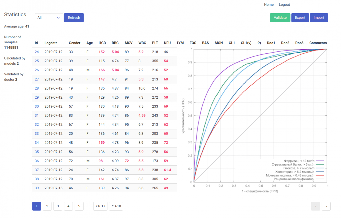Программа Универсальная Лабораторная Модель (УЛМ) позволяет строить прогностические модели на основе глубоких искусственных нейронных сетей (ИИ) и применять их для прогнозирования патологических уровней лабораторных показателей по результатам общего анализа крови (и других рутинных показателей). Например, пониженный уровень ферритина (вероятность железодефицитной анемии), повышенный уровень мочевой кислоты (вероятность подагры), повышенный уровень глюкозы (вероятность сахарного диабета) и др. Веб-сервис УЛМ выполняет прогноз по API, используя для лабораторных показателей кодировку LOINC, что даёт возможность бесшовной интеграции в существующие решения лабораторной медицины для ранней диагностики патологии.
